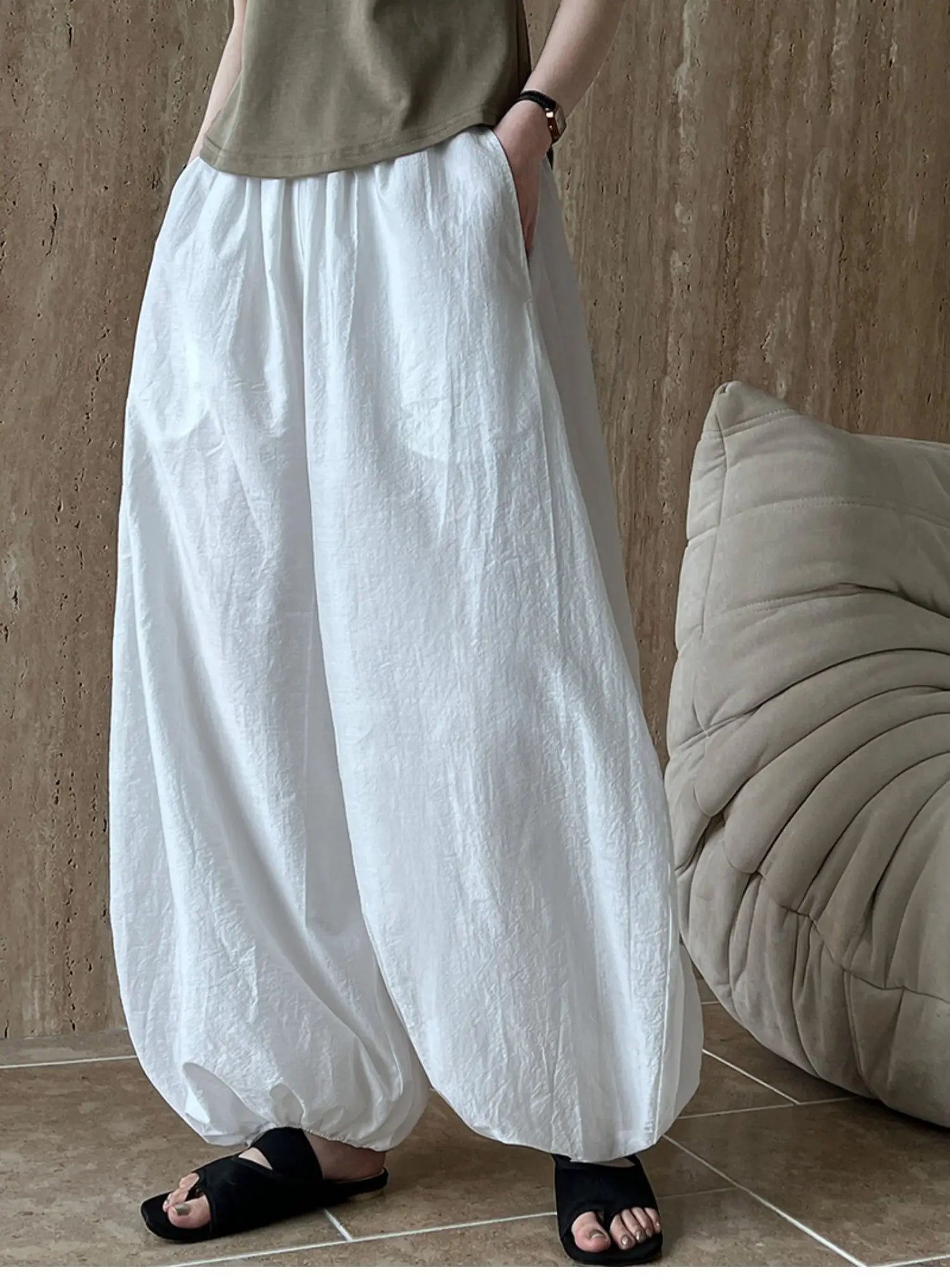 Oversized Bloomers 2025 New Summer Elegant Fashion Women Lantern Pants Casual Loose Breathable Cotton Wide Leg Pants